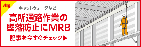 MRB型は、キャットウォーク(高所点検通路)などの高所作業時の安全対策に最適で、「高所での水平移動作業、車両上での作業」で活躍します。命綱を掛けるスライドランナーの走行面には「滑り材」を装着しているため、レール内の走行を補助します。