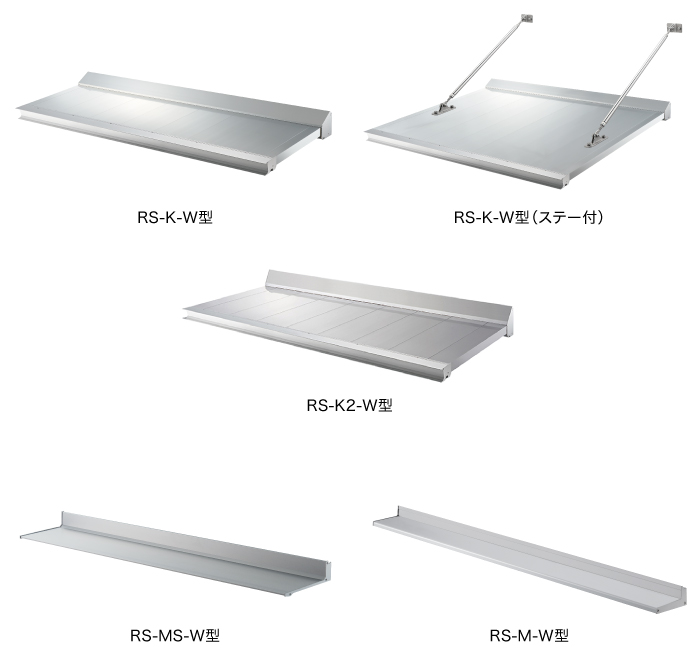 RS-M-W型は直付けタイプで、出幅100㎜と180㎜の2種類。横幅はそれぞれ500㎜から1㎜単位で対応。