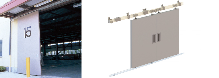 定期メンテナンスの入れ替え時に、サーバーラックの保管を想定して大きな倉庫を併設することが少なくありません。ダイケンは、倉庫や工場の大きくて重い扉を吊り下げて可動するための「ハンガーレール」部品のトップメーカーです。設置環境や扉重量に合わせて部品を選択します。