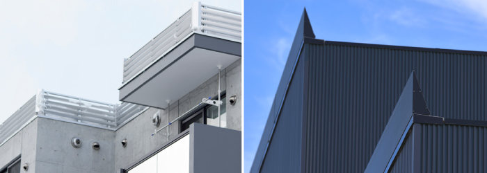 スノーテクターは積雪地における雪庇対策に最適です。建物の奥上部に設置することで、特殊構造により雪庇の発生を軽減します。アルミ製です。形状は「ルーバータイプ」と「デルタタイプ」をラインアップしています。