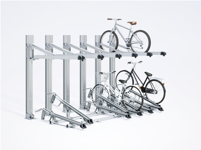 集合住宅の駐輪スペースが有効に使える自転車ラック。力の弱い方でもラックの上げ下げが簡単。