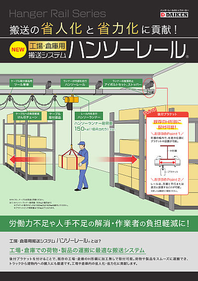 工場・倉庫内での荷物の運搬に最適な搬送システム「ハンソーレール」新発売。