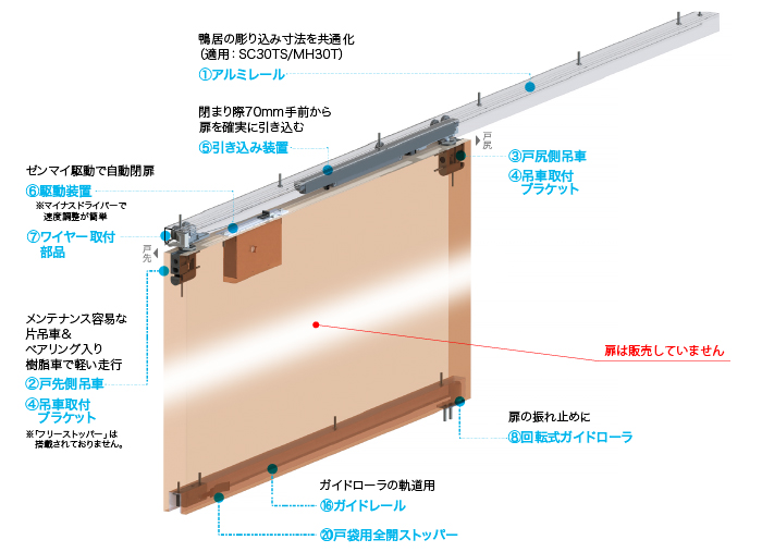 ※当社は建具扉のメーカーではございません。扉を吊るす部品のみを取り扱っております。ご注意ください。