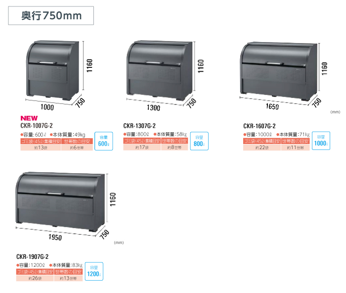 ゴミ収集庫『スチール製 CKR-G-2型』サイズラインアップ