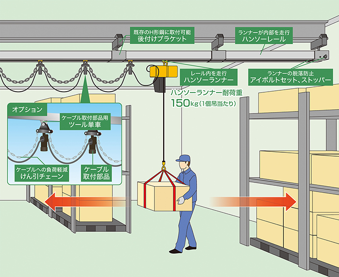 ※ハンソーランナー耐荷重:150㎏(1個吊当り)