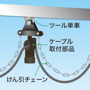 オプションでケーブル取付部品等を設置することで、ホイスト活用時にケーブルを取り付けることができます。